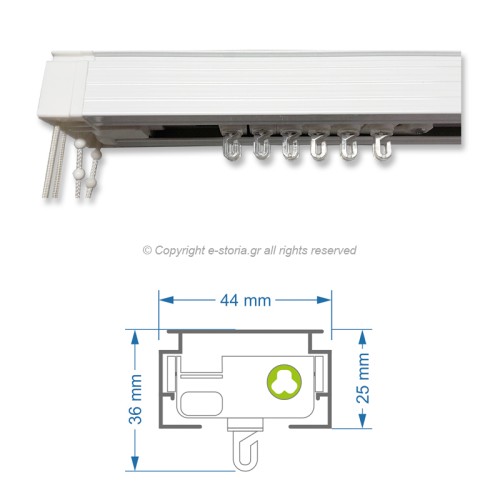 Μηχανισμός αλουμινίου σε λευκό χρώμα, για κάθετες υφασμάτινες περσίδες 89/127mm. Η λειτουργία χειρ..